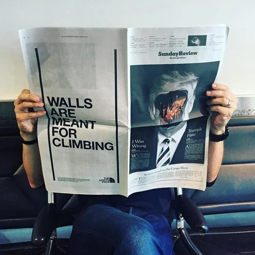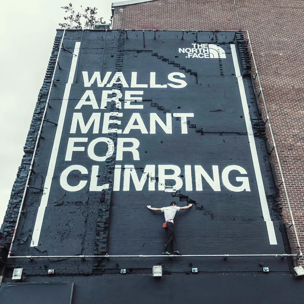 Some people build walls. Others climb them. The North Face is doing both. By donating $1 million to The Trust for Public Land to build public climbing walls in U.S. communities. We launched the global initiative with climbable billboards in New York, London and Shanghai, where celebrity climbers scaled our walls to show that climbing is about trust and unity rather than division.